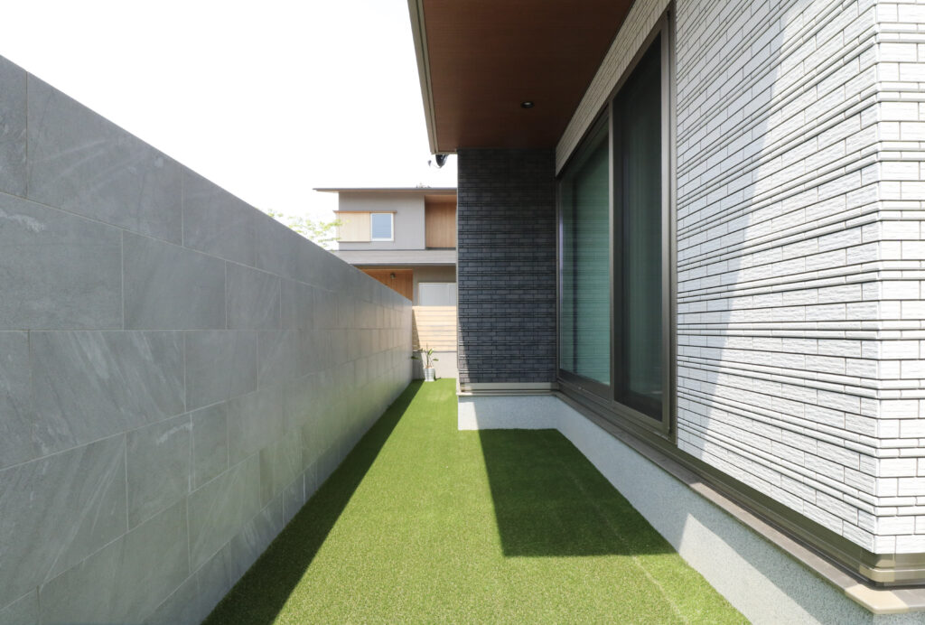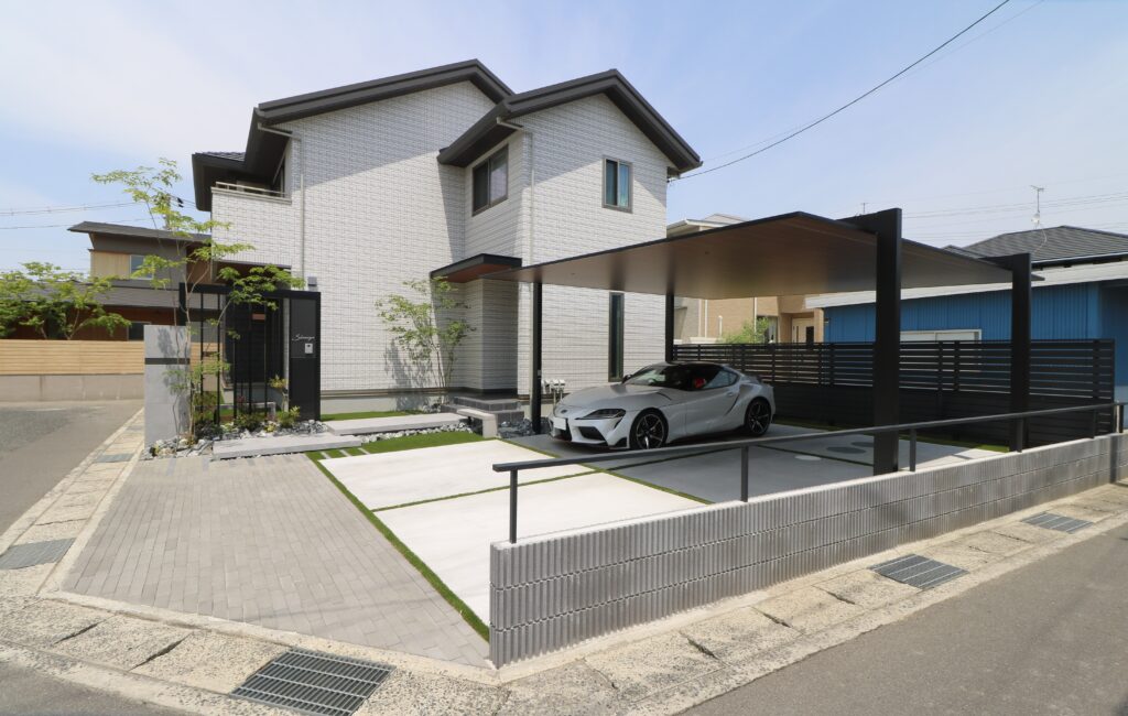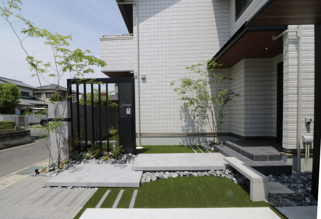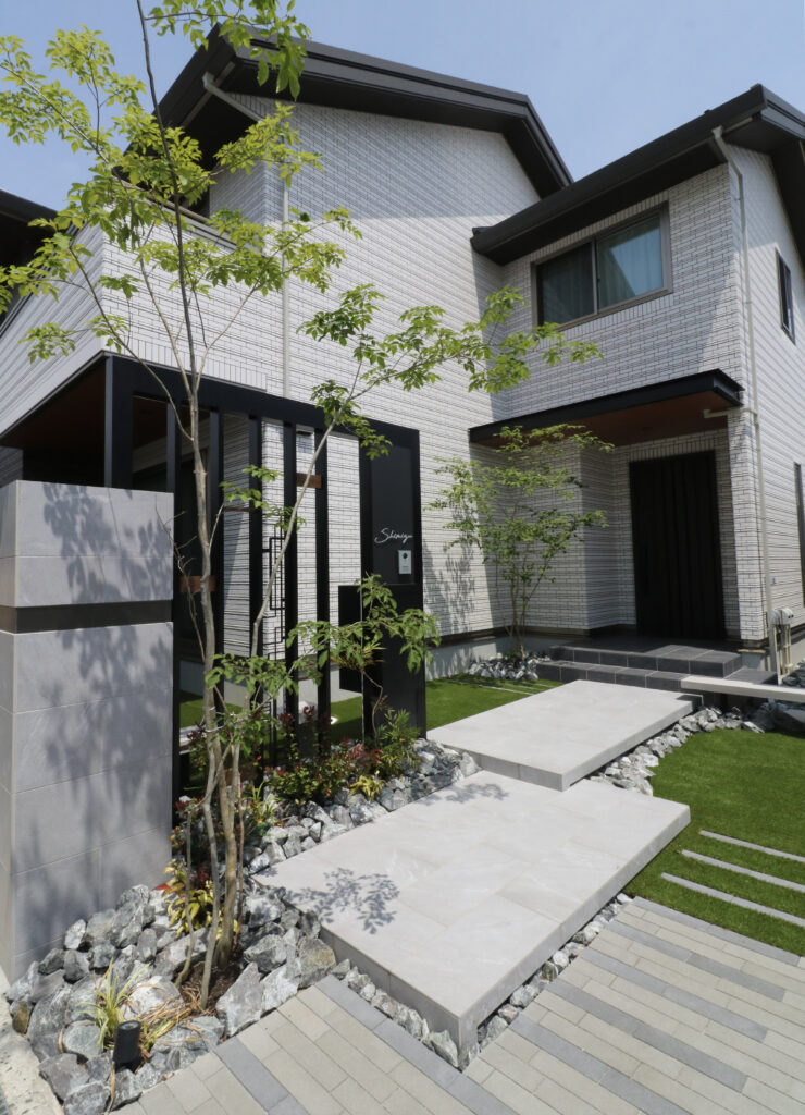 緑が馴染むシンプルモダン外構。<岡山市>